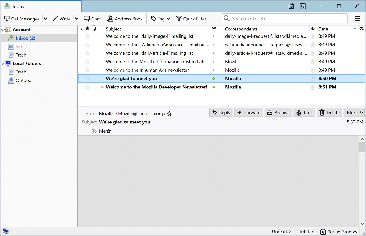 Thunderbird jest klientem poczty, który posiada także szereg dodatkowych funkcjonalności takich jak wbudowany komunikator, czytnik grup dyskusyjnych oraz kanałów informacyjnych typu Atom lub RSS.