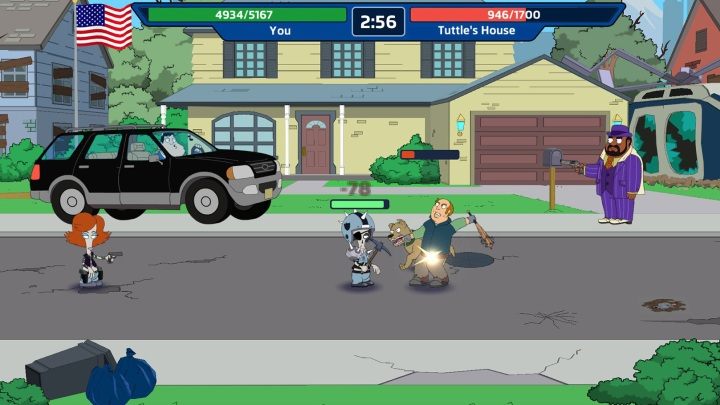 W American Dad! Apocalypse Soon również zajmujemy się rozbudową schronu. Członkowie naszej rodziny pełnią funkcję zależną od stroju, który aktualnie mają na sobie, a potyczki odbywają się w konkretnych pomieszczeniach. Większość elementów zabawy została zautomatyzowana, a nasz udział sprowadza się do wydawania poleceń oraz dbania, aby wszystko było dopięte na ostatni guzik. Największą atrakcją jest zaś humor oraz fantastyczne dialogi między postaciami.