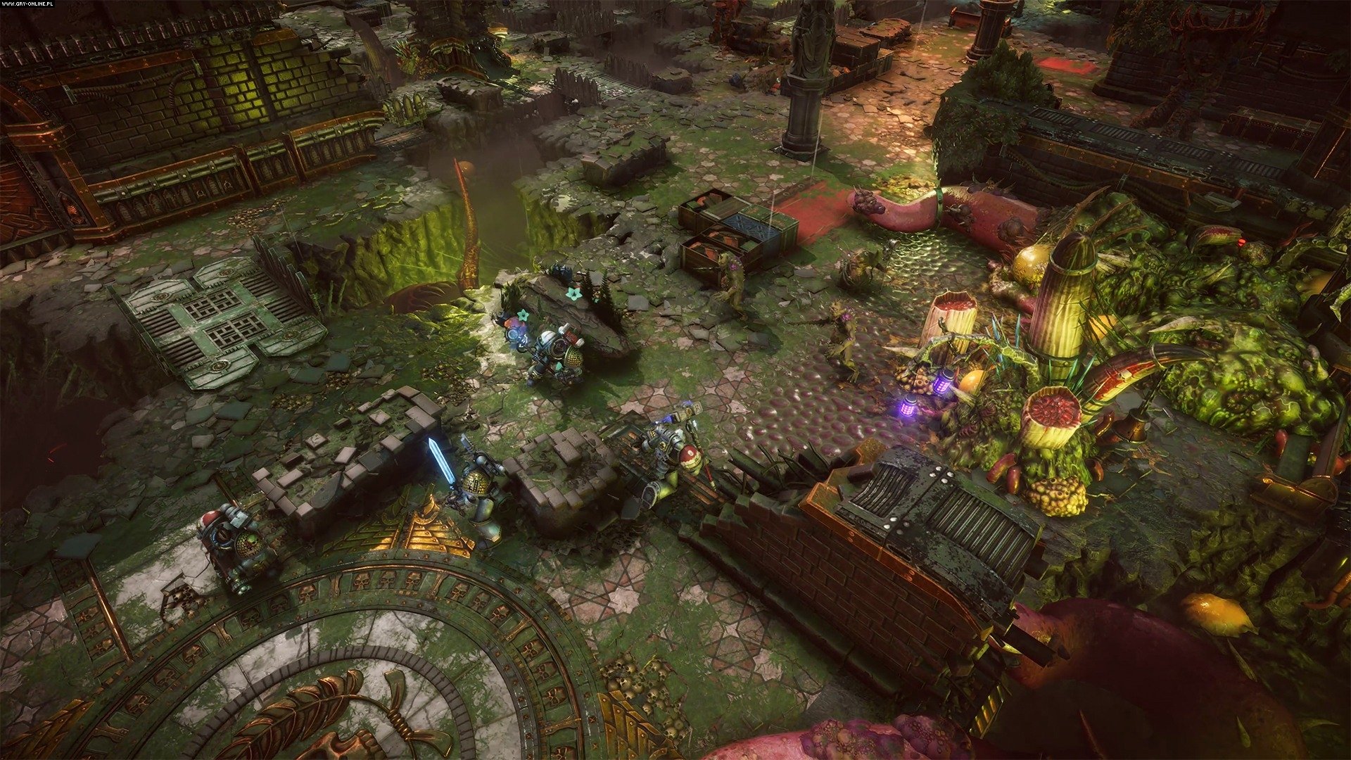 Ciekawy jest fakt, że wraz z tym, jak zaraza opanowuje kolejne światy, zmienia się nasze otoczenie, które staje się coraz bardziej niebezpieczne. Pojawiają się kultyści czy kosmiczni marines Chaosu, którzy pod wpływem przeraźliwych mutacji zyskują nowe umiejętności. Warto też zwrócić uwagę na to, że w kolejnych starciach możemy wykorzystywać otoczenie, chociażby zwalając na przeciwników filary. Gra oferuje też sporo rozwiązań dotyczących kolejnych walk, bo możemy toczyć je na odległość lub w zwarciu.