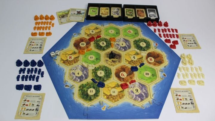 Przed nami leży plansza, która prezentuje wyspę – to ona będzie kolebką naszych rozwijających się cywilizacji. Dysponujemy drogami, osadami oraz większymi miastami, których budowa jest naszym celem, bo to przynosi punkty, a punkty dają zwycięstwo. Z jednej strony nie jest to zadanie aż tak trudne, gdyż wyspa jest naprawdę bogata w zasoby – od chociażby drewna, przez owce, a na zbożu kończąc. Z drugiej natomiast – czeka nas wyzwanie w postaci mądrego zarządzania naszymi własnościami, ruchów innych graczy, którzy zajmują planszę, oraz czynnika losowego, czyli kostek. Każdy gracz zaczyna od rzutu kostką, którego wynik determinuje, jakie rejony wyspy (każdy ma przyporządkowany numer) obrodzą w surowce, zaopatrując tym samym część kolonizatorów. Jakby tego było mało, wyrzucenie na kostkach „7” uruchamia złodzieja, którym możemy bezkarnie ograbić jednego z przeciwników. Jeżeli do tego wszystkiego dodamy możliwość handlu surowcami oraz wykupywania specjalnych kart rozwoju, otrzymamy prawdziwe pole do popisu dla naszego zmysłu strategicznego.