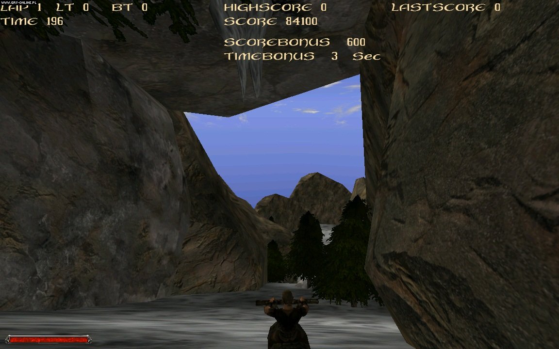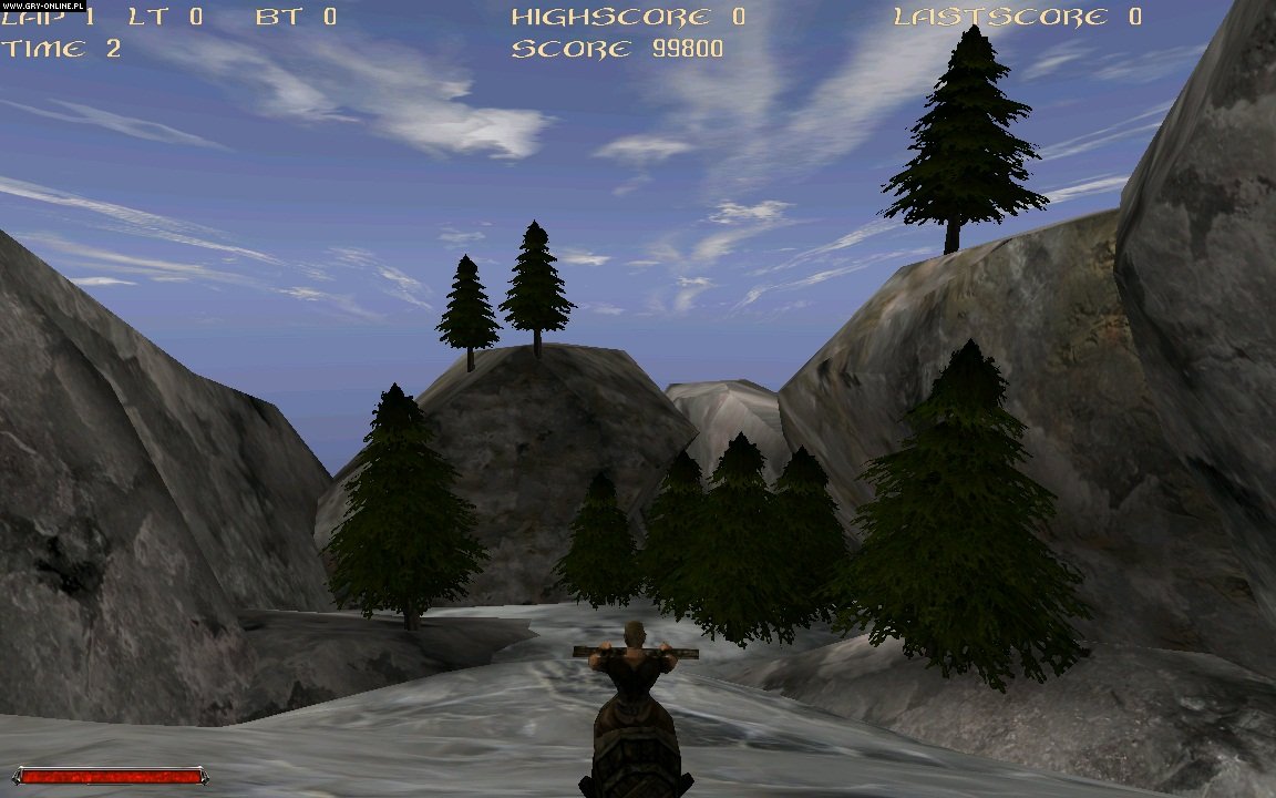 Coś dla fanów „ścigałek”. W Gothic Racer naszym zadaniem jest pokonanie wyznaczonej, umiarkowanie długiej trasy w jak najkrótszym czasie. Nie „jeździmy” po znanych lokacjach, trasa została przygotowana od zera. Za udane manewry dostajemy premię czasową, przydatną w biciu kolejnych rekordów. Zapytacie pewnie, na czym można się ścigać w Gothicu, w którym nie ma przecież żadnych wierzchowców czy pojazdów. I tu twórcy popuścili wodze fantazji, bo do naszej dyspozycji oddane zostają przykładowo lewitujące beczki czy pnie drzew, a nie mniej oryginalne środki transportu odblokowywane są po kolejnych przejazdach.