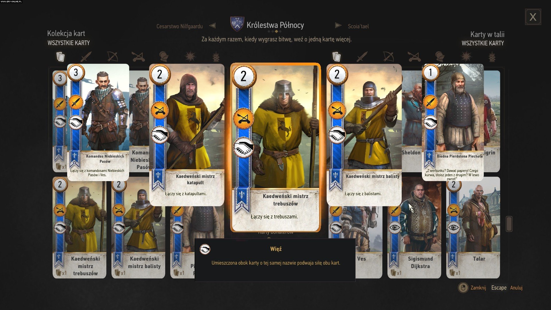 Po pierwsze, dorzucono garść niedostępnych wcześniej kart, np. Nekkera wojownika czy więcej machin oblężniczych dla Królestw Północy. Po drugie, wiele „jednostek” doczekało się zupełnie nowych, klimatycznych zdolności – ot, Villentretenmerth po zdjęciu z planszy wraca natychmiast jako Borch Trzy Kawki, a balisty i katapulty pojawiają się na polu bitwy od razu z „obsługą”. Wszystko to w celu lepszego wyważenia poszczególnych talii, które – jak wszyscy wiemy – początkowo nieco odstawały pod względem siły jedna od drugiej.