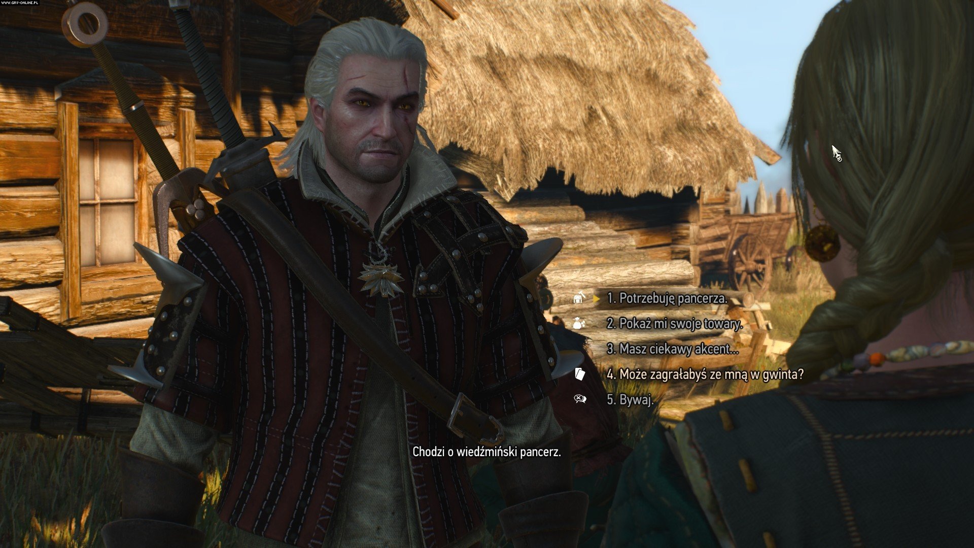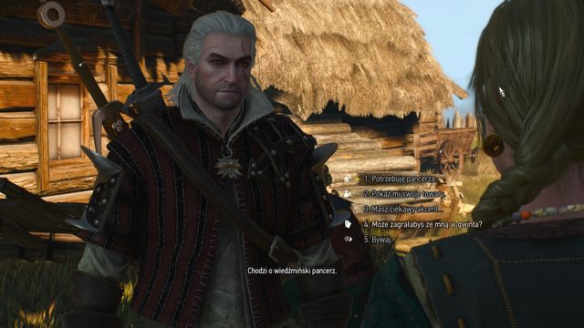 Choć w mojej opinii wcale nie musi, bo projekty pancerzy z Zabójców królów też były bardzo fajne. Warto mieć na uwadze, że poszczególne modele nie zostały przeniesione 1:1 – poddano je zabiegowi pielęgnacyjnemu, więc nie odbiegają poziomem detali od przedmiotów z Dzikiego Gonu. Szkoda tylko, że autor wybierał zastępstwa trochę na chybił trafił; rzuca się to w oczy szczególnie w przypadku eleganckiego stroju dworskiego, który zmienił się w kozacką zbroję (widoczną na screenie poniżej)... ale dającą wciąż 1 punkt pancerza. Tak, statystyki nie ulegają modyfikacjom. Na koniec wypada wspomnieć, że mod uwzględnia zarówno napierśniki, jak i rękawice, buty oraz spodnie, ale tylko te noszone przez Geralta – wygląd NPC pozostaje bez zmian.