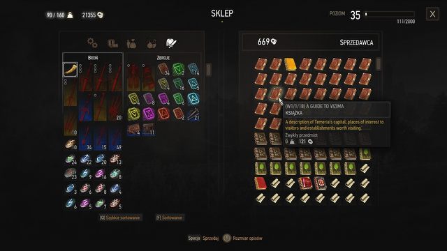 Jednak na tym lista zmian oferowanych przez Witcher Book Collection się nie kończy. Autor modyfikacji pokusił się też o wrzucenie do gry wszystkich książek z pierwszego Wiedźmina i Wiedźmina 2! Niestety, w obecnej wersji teksty są po angielsku, ponadto wszystkie zostały skupione w jednym miejscu – można je nabyć u księgarza na rynku w Novigradzie. Oprócz tego moder opatrzył setki przedmiotów krótkimi opisami (np. książki, składniki rzemieślnicze i obiekty związane z zadaniami). I jeszcze jedna dobra zmiana – w ofercie książęcego kamerariusa w Beauclair i w księgarni w Novigradzie pojawiły się brakujące pozycje o potworach.