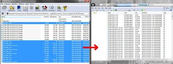 - korzystając z Eksploratora Windows przerzuć wybraną skórkę (czyli pliki z rozszerzeniem .wdr i .wtd zawarte w katalogu z modyfikacją) do okna OpenIV;