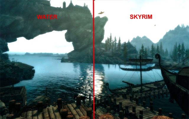 Jeśli nie podobała Ci się woda w Skyrimie, ten mod jest dla Ciebie. Tekstury i efekty zostały znacznie poprawione i dotyczy to nie tylko refleksów światła, ale i samej faktury wody (która jest teraz bardziej „mokra”). Da się również zauważyć, że ulepszono animacje strumyków i wodospadów – płyną one w bardzo wartki i żywiołowy sposób, przez co sprawiają wrażenie naprawdę niebezpiecznych. Do tego morskie bałwany rozbijają się o północne brzegi krainy, a rzeki zmierzają we właściwym kierunku (co nie jest takie oczywiste w podstawowej wersji Skyrima).