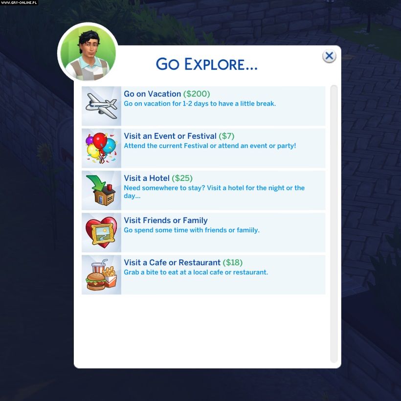 Niestety, podgląd wyprawy jest niemożliwy, a my mamy wpływ tylko na to, co nasz Sim zrobi – skosztuje lokalnych przysmaków czy może odwiedzi najbliższych. Każda decyzja przynosi jakiś skutek. Odwiedzanie nowych miejsc często poprawia nastrój. Wszystkie możliwości moda są dostępne dzięki banalnej mechanice.