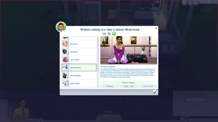Taneczną przygodę nasz Sim zaczyna jako niedoświadczony uczeń, ale szybko przeradza się ona w dobrze płatną karierę. Możliwości jest sporo – można zostać zawodowym instruktorem tańca, perfekcyjną baletnicą czy ulicznym tancerzem, zamieszczającym swoje popisy na YouTubie.