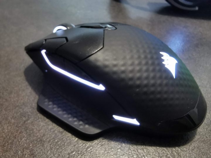 Corsair Dark Core RGB PRO to bez wątpienia coś dla osób lubujących się w dostosowywaniu urządzeń do swoich potrzeb. Oprócz 8 przycisków, które możemy dowolnie programować, znajdziemy tutaj też możliwość zmiany czułości sensora co 1 dpi, no i oczywiście 9 stref podświetlenia RGB. Światełka można też wyłączyć, dzięki czemu wydłużymy czas pracy na baterii nawet do 50 godzin - standardowo przy zastosowaniu łączności 2,4 GHz Dark Core RGB PRO domagał się kabelka co kilkanaście godzin, co i tak jest wynikiem przyzwoitym. Domyślne (po wyjęciu myszy z pudełka) ustawienia częstotliwości raportowania wynoszą 1000 Hz, ale dzięki oprogramowaniu iCUE możemy je zwiększyć dwukrotnie. Aplikacja Corsaira pozwala też na skalibrowanie sensora pod konkretną powierzchnię, co w praktyce przekładało się na minimalnie bardziej precyzyjną obsługę.