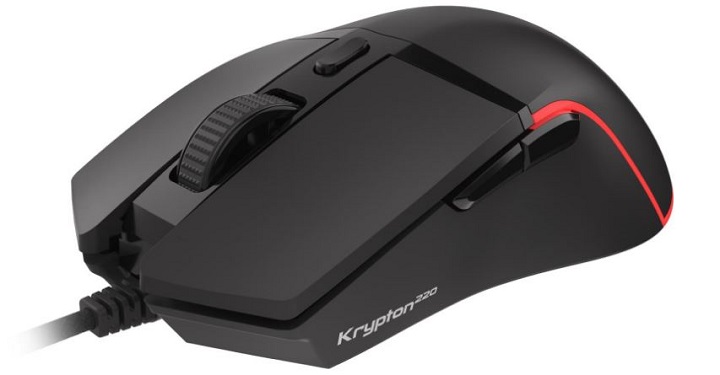 Cena modelu nazwanego Krypton 220 startuje od 51 zł. Zastosowano w nim optyczny sensor o rozdzielczości 6400 DPI z odświeżaniem 1000 Hz i akceleracją 22 G. Parametry na papierze nie robią więc szału, ale w praktyce w zupełności wystarczą do grania w każdy gatunek gier, ale unikajcie twardych podkładek np. plastikowych – czujnik sobie na nich nie radzi. Ba, zapewne nikt nie wykorzysta nawet maksymalnej czułości. Jej poziom można przełączać dedykowanym przyciskiem – do zaprogramowania jest sześć progów DPI. Myszka obsługuje także makra oraz pozwala w dowolny sposób przypisać dostępne przyciski – jest ich 6. Budżetowy gryzoń został nawet wyposażony we wbudowaną pamięć.