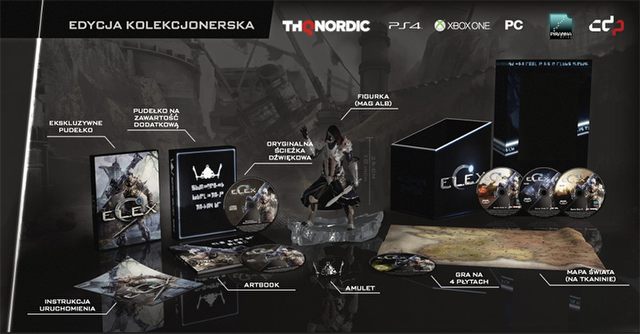 Jak bardzo dobre lub niedobre byłoby nowe RPG studia Piranha Bytes – Elex zawsze znajdzie grupę oddanych fanów, a który z nich nie wolałby zanurzyć się w świat planety Magalan za sprawą bogatej edycji kolekcjonerskiej? W gustownym opakowaniu znajdziemy mapę uniwersum gry drukowaną na tkaninie, amulet, ścieżkę dźwiękową na płycie, artbook z grafikami oraz figurkę maga.
