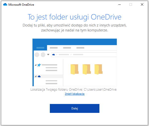 To dobry moment na stworzenie folderu, do którego będą trafiać pliki wysyłane następnie do chmury. Proponujemy dodać nowy folder do pulpitu i nazwać go np. „Kopia zapasowa w chmurze OneDrive”. To jednak tylko nasz pomysł. Po przygotowaniu folderu wracamy do powyższego okna i wybieramy „Zmień lokalizację”. Po wskazaniu wcześniej stworzonego folderu dziękujemy za wersję Premium i wszystko jest gotowe. OneDrive i jego dwa domyślne foldery „Dokumenty” i „Załączniki” powinny znajdować się w lokalizacji wybranej przez użytkownika.