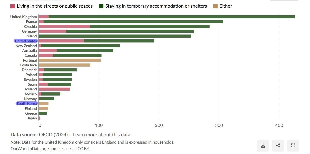 Innym tematem ściśle z tym związanym jest także polityka socjalna dzisiejszych państw, odnosząca się do mechaniki zapomóg. Samo porównywanie amerykańskiego The Sims z koreańskim inZOI odzwierciedla różnice w funkcjonowaniu mieszkańców obu krajów. Według danych z lat 2022/2023 opublikowanych przez Our World Data aż 193 osoby na 100 000 ludzi w Stanach Zjednoczonych mierzy się z kryzysem bezdomności, w porównaniu z 16 na 100 000 w przypadku Korei Południowej.