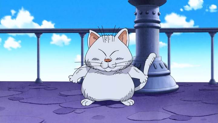 Kiedy w końcu dotarł na szczyt, jego oczom ukazał się niewielki biały kot (w mandze w pewnym momencie miał on kolor niebieskozielony, w Dragon Ball Online zaś – ciemnoniebieski). Obiecał on Goku, że jeżeli uda mu się zdobyć flakon ze świętą wodą, zyska ogromną siłę. Młody Saiyanin przez trzy dni jednak nie potrafił odebrać zwinnemu bogu cudownego eliksiru. Kiedy zaś w końcu to zrobił, wypicie wody niczego nie zmieniło. Okazało się, że stał się silniejszy dzięki samym próbom przechytrzenia Karina.