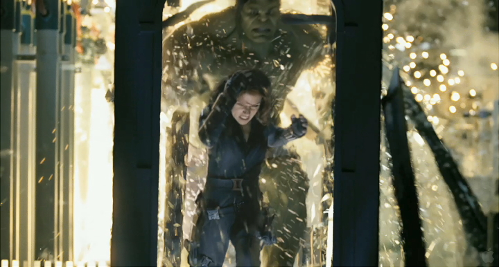 Podczas próby zrekrutowania Bruce’a Bannera dochodzi do jego transformacji w Hulka. Niestety, Banner nie jest w stanie panować nad swoją przerośniętą zieloną formą i po przemianie jako Hulk atakuje Czarną Wdowę. Emocjonująca scena pościgu nie jest straszna w klasycznym tego słowa znaczeniu; bardziej trzymająca w napięciu i autentycznym lęku o życie Czarnej Wdowy.
