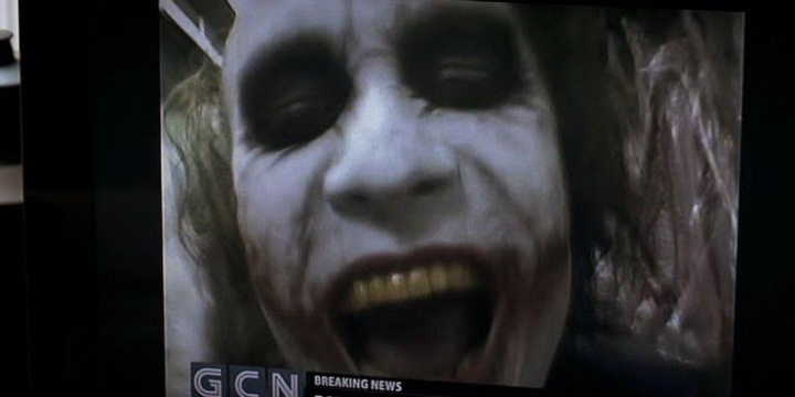 Jednym z pierwszych momentów w filmie, kiedy poznajemy Jokera bliżej, jest nagranie, jakie ten wysyła do stacji telewizyjnej. Grozi w nim Batmanowi i namawia go do ściągnięcia maski; zapewnia też, że dopóki Batman się nie podda, dzień w dzień będą ginąć niewinni ludzie. Nagranie w pigułce przedstawia szaleństwo Jokera i jego charakterystyczny, niepokojący sposób bycia. Niska jakość wideo, trzęsący się obraz i twarz Jokera, którą ten raz za razem przybliża do kamery, wywołują w odbiorcy autentyczny lęk. Nie wiem, czy ktokolwiek po otrzymaniu takiej groźby mógłby jeszcze spać spokojnie.