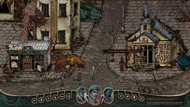 Ciekawą koncepcję fabularną ubrano w rozgrywkę typową dla znanej i kochanej klasyki RPG. Akcję obejrzymy w rzucie izometrycznym, odbędziemy rozmaite rozmowy z napotkanymi postaciami i stoczymy turowe walki. A wszystko to w atmosferze grozy i szaleństwa, potęgowanej przez posępną dwuwymiarową grafikę, zdominowaną przez czernie i szarości. Niczym w Planescape: Torment i Falloucie 2 będziemy przygarniać kolejnych wykolejeńców, z którymi stworzymy ekipę. Bo nawet w świecie Lovecrafta – a może zwłaszcza tutaj – przed wyruszeniem w drogę, należy zebrać drużynę.