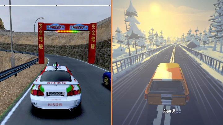 Oczywiście tak zwany czynnik nostalgii pogłębia grafika rodem z ery pierwszego PlayStation, no i zawartość, która obejmuje najbardziej kultowe auta rajdowe – od legend z lat 70., przez budzące grozę i sentyment jednocześnie potwory z Grupy B, po „nowoczesną klasykę” z przełomu tysiącleci. Wszystkie modele są oczywiście nielicencjonowane, ale momentalnie rozpoznawalne. Szkoda tylko, że brzmią i prowadzą się prawie jednakowo bez wyrazu (a auta z Grupy B bywają wolniejsze niż pozostałe).