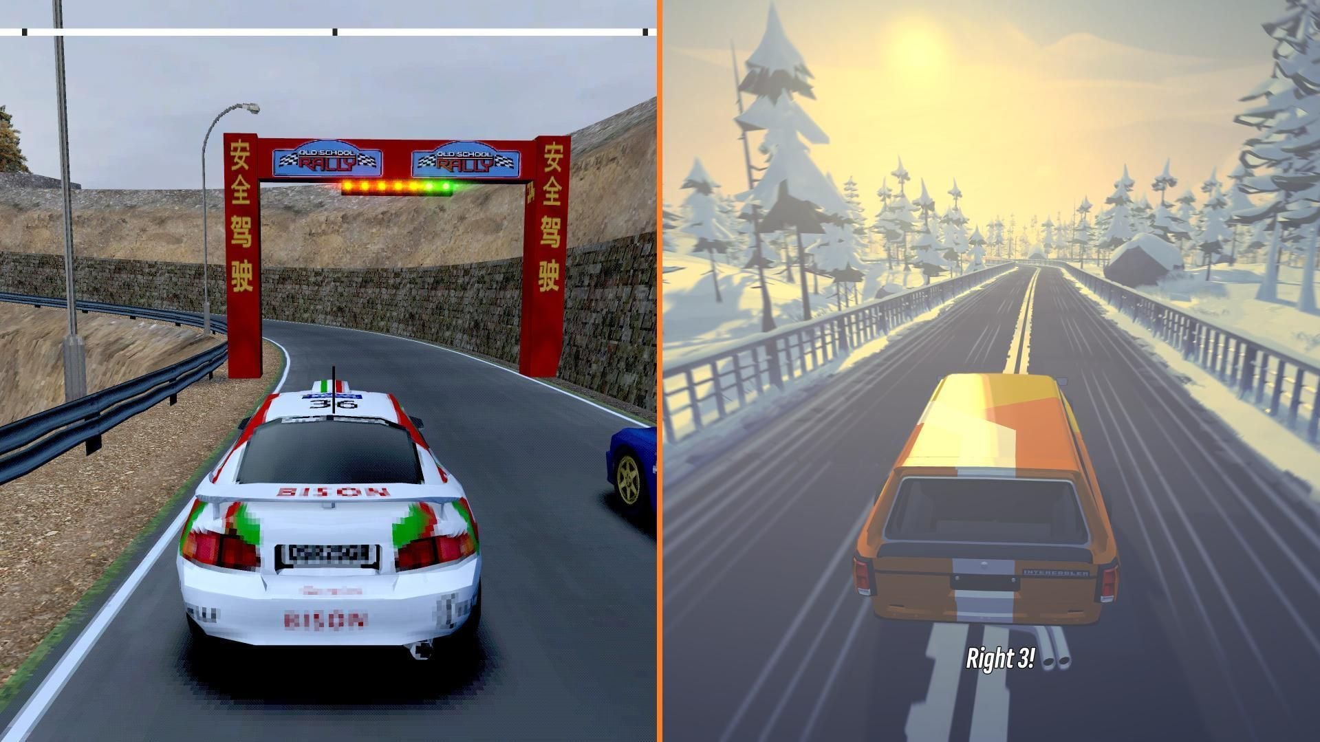 Old School Rally (po lewej) i #DRIVE Rally (po prawej) – dwa nowe oblicza arcade’owych rajdów. Jedno z Grecji, drugie z Polski.