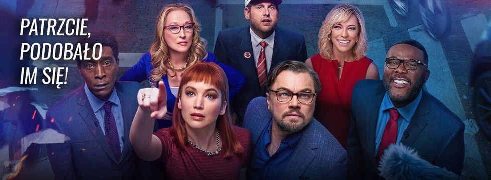 Do baru wchodzą Leonardo DiCaprio i Jennifer Lawrence. Po chwili dołączają do nich Cate Blanchett, Ariana Grande oraz Meryl Streep. Proporcje wyrównują Timothée Chalamet i Ron Perlman, a w pewnym momencie w tle miga nawet Chris Evans. Nie wiem, czy taka impreza miałaby rację bytu; jeśli jednak bar wymienić na plan filmowy, okazuje się, że duża liczba gwiazd wcale nie przytłacza. Co innego pewna kometa…