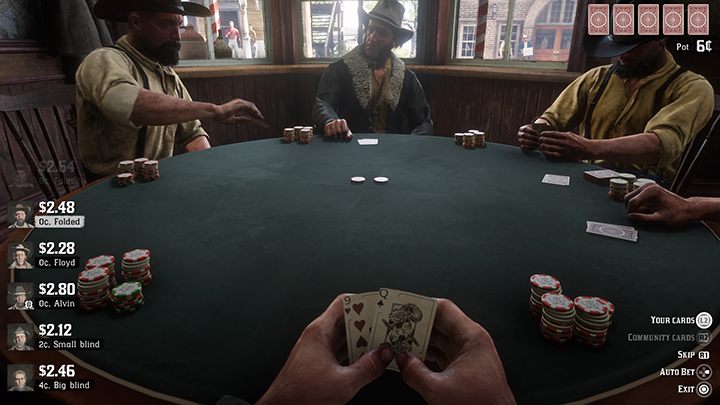 Poker w Red Dead Redemption 2 odgrywa zdecydowanie mniejszą rolę niż w rzeczywistości. Może w trybie online pojawią się jakieś turnieje?