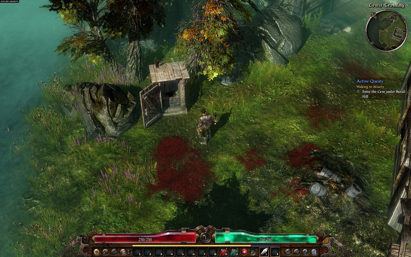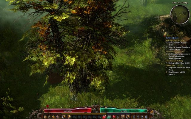 Akt drugi zabiera nas w zachodnią cześć Carin. W przeciwieństwie do bagnistych i mrocznych regionów wschodnich, które poznaliśmy w pierwszym akcie, następny etap opowieści wita nas pięknymi, zielonymi polami. Trafiamy na tereny farmerskie, więcej też mamy do czynienia z ludzkimi przeciwnikami, a nie potworami. Mnie te słoneczne pola skojarzyły się z fragmentami starego hack and slasha Dungeon Siege, kiedy także – od czasu do czasu – trafialiśmy w urokliwe i po prostu miłe dla oka rejony. Nie należy się jednak spodziewać, że Grim Dawn przestało być ponure – paleta barw ciągle ogranicza się do przygaszonych pasteli, tła są klimatyczne, a lochy mroczne i wilgotne. Pod tym względem gra nie zawodzi. Trudniej za to było mi dostrzec podkreślane przez twórców możliwości decydowania o zwrotach w historii; nie traktuję tego jednak jako wady. W produktach tego typu fabuła kryje się gdzieś za mechaniką walki i ogólnym klimatem, a już współdecydowanie o jej rozwoju to po prostu miły dodatek. Co ciekawe, do aktu drugiego możemy trafić po prostu reperując most, który prowadzi w kierunku zachodnim, nie jest do tego niezbędne „odhaczenie” konkretnych wątków.