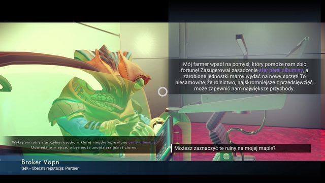 Ci z kolei zlecają nam proste zadania, za wykonanie których zyskujemy nowe możliwości rozbudowy bazy, technologie czy broń. To właśnie ten aspekt całkowicie rewolucjonizuje sposób grania w produkcję Hello Games, i usuwa w niebyt jej największą wadę – brak jakiejkolwiek motywacji do eksplorowania ciał niebieskich. Chociaż nieskomplikowane, misje zostały starannie zaprojektowane, aby zmuszać do odkrywania planet najróżniejszych typów i korzystania z aktywności, które wcześniej się ignorowało.