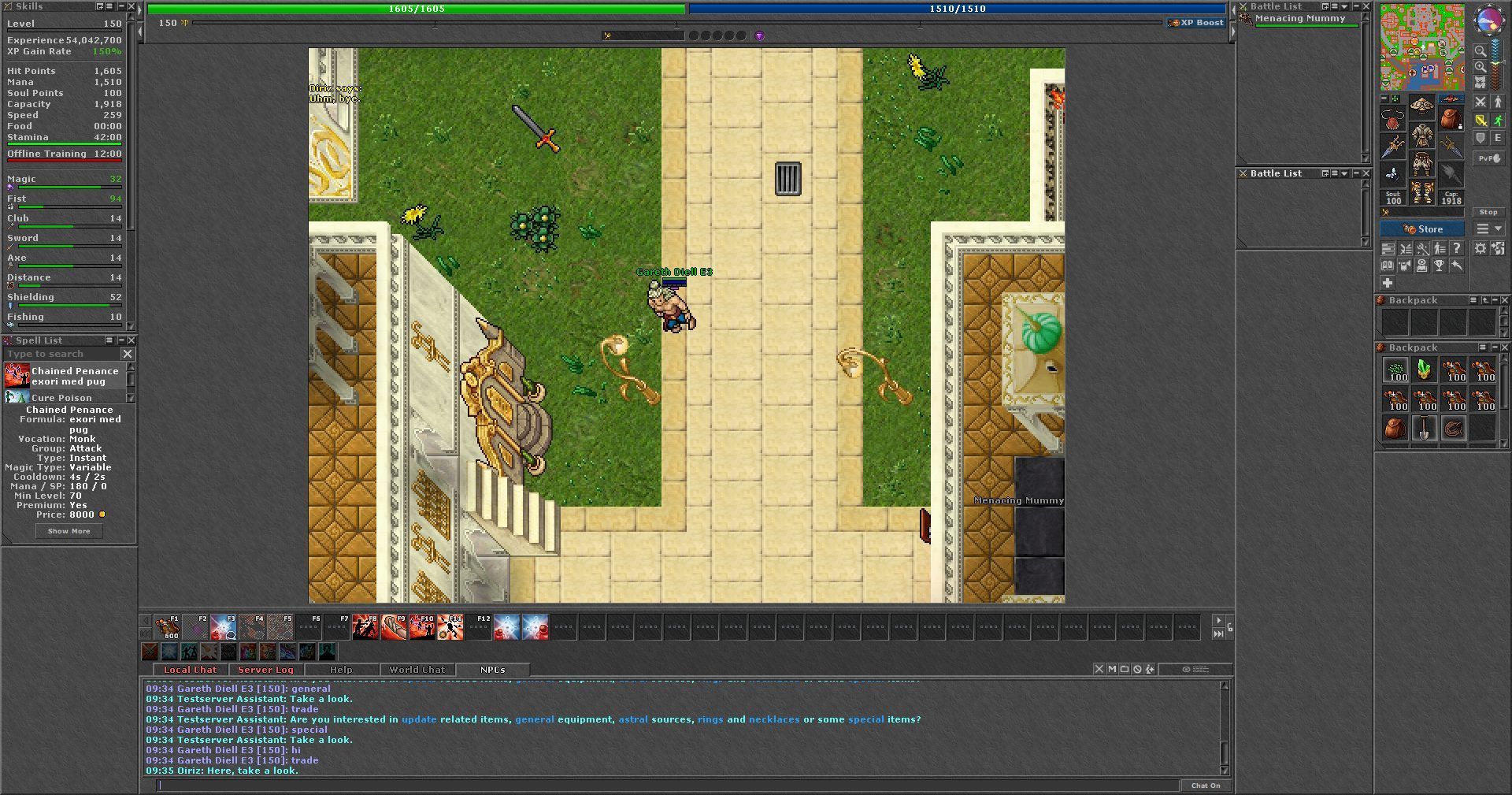 Z biegiem czasu Tibia rozrosła się do znacznych rozmiarów. Przy mnóstwie regularnych aktualizacji dodających nową zawartość i funkcje musieliśmy kopać naprawdę głęboko, aby znaleźć wszystkie interakcje i zadania specyficzne dla nowej profesji. Ostatecznie musieliśmy upewnić się, że mnich jest pełnoprawną profesją, a to oznaczało wprowadzenie wielu drobnych zmian.