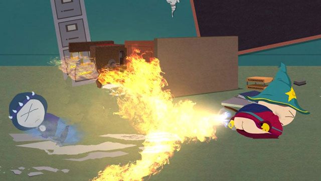 South Park w wersji elektronicznej bierze na celownik m.in. zasady rządzące turowym systemem walki i magiczne artefakty, a dzięki osadzeniu całej rozbuchanej historii o ocaleniu świata w realiach chłopięcej zabawy można przy okazji śmiać się z wszystkiego innego. Potężna „pała zniszczenia” to tak naprawdę kij bejsbolowy, magiczny atak może być swojskim kopnięciem w jądra lub podpalonym pierdnięciem, a forteca będąca areną ostatecznego starcia jest skleconą z desek i starych mebli wątłą konstrukcją w jednym z przydomowych ogródków. Czyli tak na dobrą sprawę cały Kijek Prawdy śmieje się nie tyle z komputerowych „high fantasy RPG”, co ze znanych dobrze każdemu szanującemu się nerdowi LARP-ów.