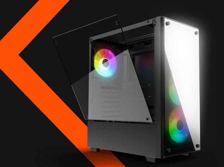 Nowy gracz w naszym zestawieniu i ogólnie na rynku wyróżnia się nie tylko całkiem korzystną ceną. Jak sama nazwa sugeruje, obudowa cechuje się lustrzaną powierzchnią panelu frontowego. Hartowane szkło z boku pozwala także zajrzeć do wnętrza – na szczęście kable można łatwo i wygodnie ukryć. Wygląda to bardzo efektownie, szczególnie jak włączymy podświetlenie („RGBTęcza”) jednego z 4 fabrycznie zamontowanych w środku wentylatorów. Choć zdecydowana większość osób w redakcji nie zalicza się do zwolenników wszelkiej maści świecących i błyszczących „gamerskich” rozwiązań stylistycznych, „lustereczko” Kruxa bardzo się nam spodobało.