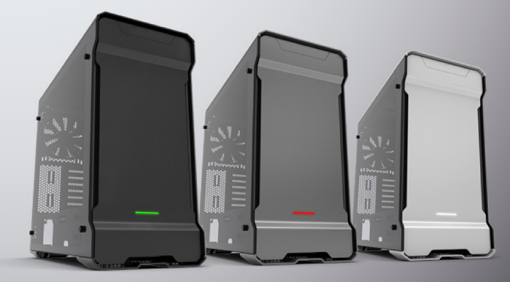 Obudowa Enthoo Evolv X jest nową edycją obudów ATX serii Evolv, z zamontowanymi dwiema dużymi szybami z hartowanego szkła po obydwu stronach bryły produktu. Dzięki rozwiązaniu z dwoma oknami, obudowa ta oferuje bardzo atrakcyjną możliwość podziwiania wnętrza, które wykonano ze stali w kolorze czarnym. Panel przedni oraz górna pokrywa wykonane zostały z aluminium i mają grubość trzech milimetrów. Cztery porty na panelu przednim (2x USB 3.0 i 2x 3,5mm Jack) umieszczone zostały w zamykanej wnęce, zaś w dolnej części panelu znajduje się akcent wizualny w postaci paska podświetlanego diodami LED. Podświetlenie dostępne jest w kilku wariantach kolorystycznych, ale samo światło mogłoby być bardziej jednolite i nieco intensywniejsze.