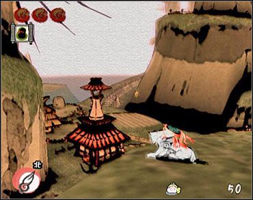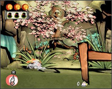 Rozwiązywanie łamigłówek związane jest z jednym z najciekawszych, a z pewnością najbardziej innowacyjnym motywem w Okami. Mowa o funkcji, która w oryginale nazwana została „Celestial brush” (boski pędzelek, whatever). Gdy w trakcie gry wciśniemy przycisk R1, akcja zatrzyma się, obraz przybierze tonację kolorystyczną sepii, a my (prawdopodobnie za pomocą analoga) sterować będziemy owym pędzlem. Przesuwając go po ekranie w charakterystyczny sposób (kłaniają się akcje kursorem w Black & White) oraz przy wykorzystaniu odpowiednich mocy, wywołać będziemy mogli przeróżne, często zaskakujące efekty.