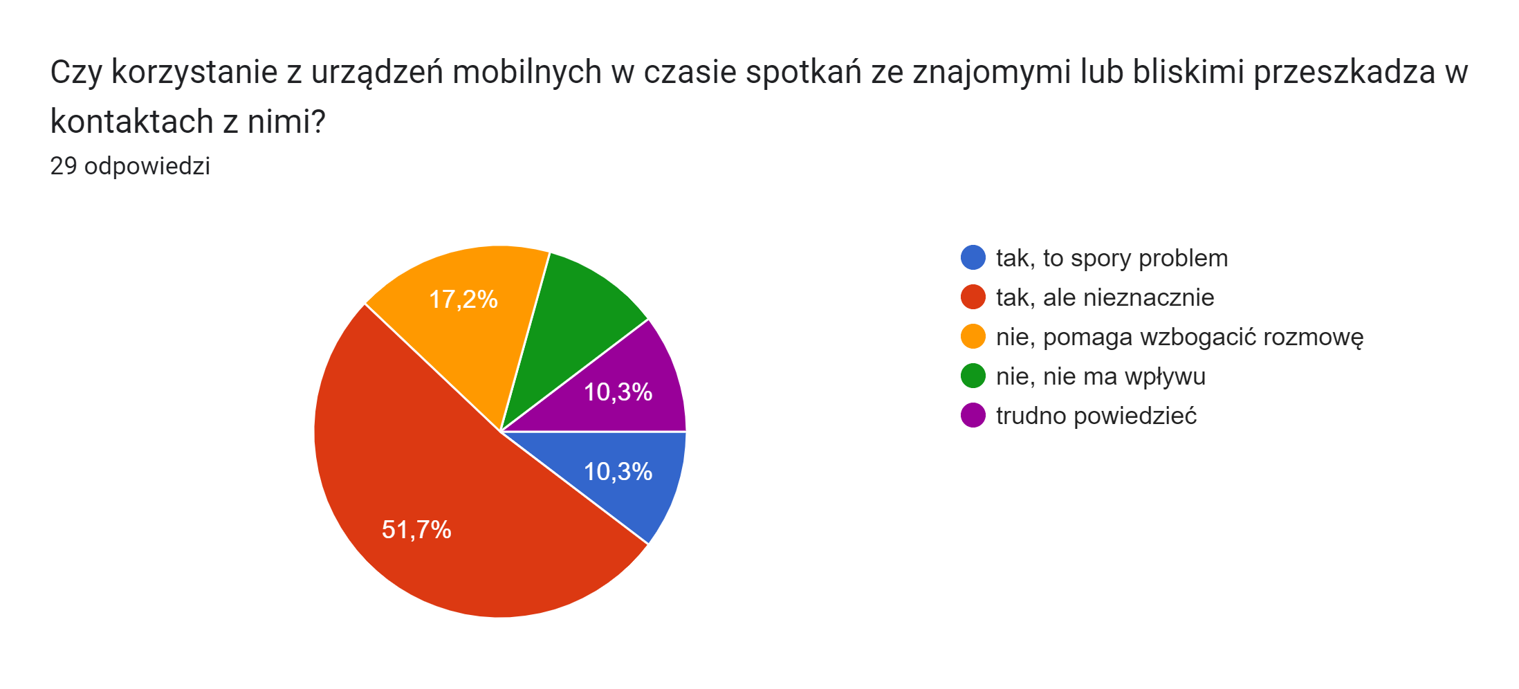 Jeżeli macie wrażenie, że jestem sceptyczny, to macie rację. Na pytanie, czy w takim razie doświadczyli kiedyś phubbingu, zaledwie co czwarty zaprzeczył, a 66% przyznało, że czasami jest ignorowana przez drugą osobę. Odnoszę wrażenie, które trzeba by pewnie poprzeć dodatkowymi badaniami, że możemy być nieświadomi, że w trakcie rozmowy sięgamy po telefon i odcinamy się od naszych rozmówców.