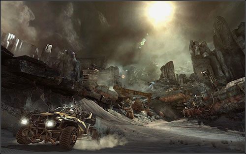 Baza bandytów znajdowała się spory kawałek od stacji benzynowej, otrzymałem więc kluczyki do samochodu typu buggy. Pojazdy są kolejną nowością w stosunku do poprzednich gier id Software. Trzeba przyznać, że brak doświadczenia nie przeszkodził studiu w doskonałym dopracowaniu tego aspektu zabawy. Wozy świetnie trzymają się podłoża i prowadzenie ich nie sprawia większego problemu, nawet po włączeniu dopalaczy. Momenty spędzone za kierownicą dostarczają niemałej frajdy i stanowią miły przerywnik pomiędzy sekcjami strzelankowymi.