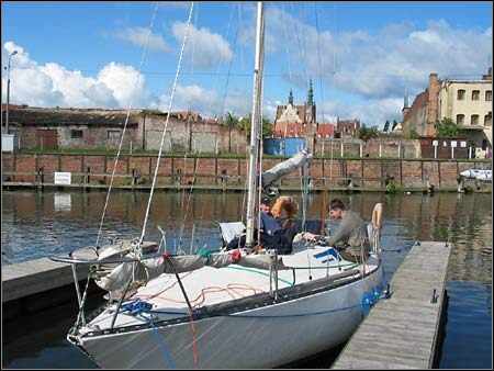 Po paru godzinach walki z żywiołem dotarliśmy po południu do portu Gdańskiego, gdzie podróż jego kanałem do centrum Gdańska okazała się wielką ulgą po przeżyciach poprzednich godzin. Wszyscy byli zmarznięci i mokrzy do ostatniej nitki. Po dopłynięciu, zacumowaniu w porcie jachtowym i przebraniu się udaliśmy się na stare miasto oraz na szanty. Dzień ten na pewno zapamiętamy na długo :) zwłaszcza COALAO, który miał na łódce duże problemy żołądkowe. W nocy poszliśmy spać z dużymi obawami co do pogody, która nas miała przywitać na drugi dzień.