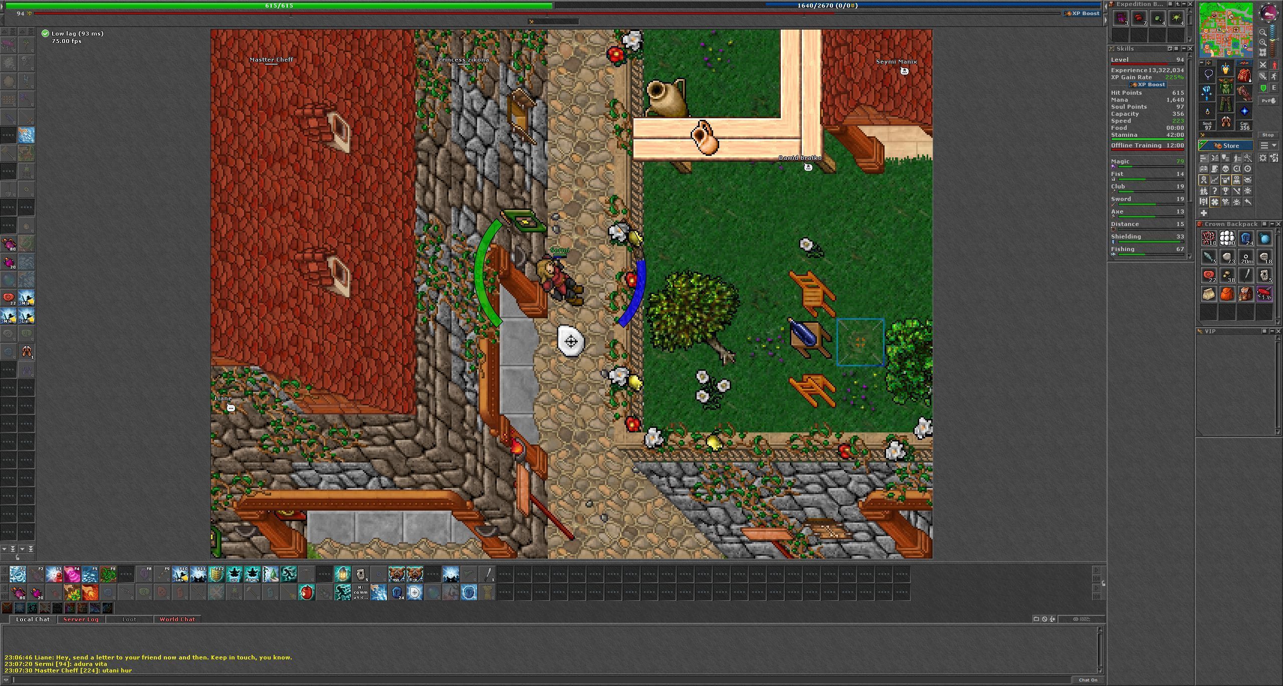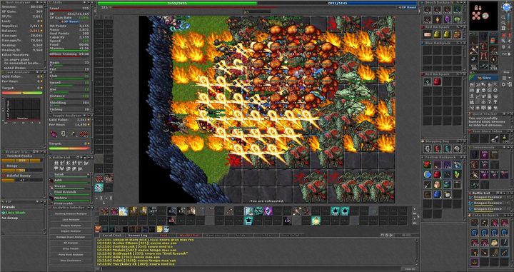 Czytelność dzisiejszej Tibii jest cóż... nienachalna. Po lewej stronie zmieściłaby się jeszcze jednak kolumna na narzędzia analityczne, dodałem ją niedługo później.Tibia, CipSoft GmbH, 1997-2025.