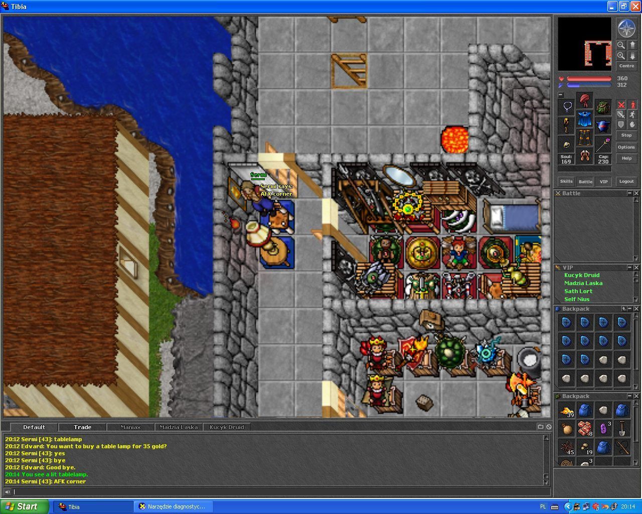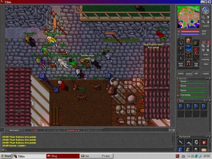Gdzieś około 2005 roku traktowałem Tibię nieco jako przedłużenie Gadu-Gadu. Miałem tam sporo znajomych i gildię, a do gry logowałem się niemal od razu po powrocie ze szkoły. Tibia pełniła właściwie podobną funkcję jak obecnie Discord, choć oczywiście w dużo bardziej ograniczonej formie. Dzieliliśmy się tam historiami, rozmawialiśmy o głupotkach dnia codziennego, przeżywaliśmy dramy i wspólnie spędzaliśmy czas. W międzyczasie uprawiałem tzw. „mana sitting”, czyli po prostu stałem w centrum miasta, patrzyłem, jak regeneruje mi się mana, i robiłem runy UH (ang. ultimate healing), które następnie sprzedawałem silniejszym graczom. Miałem 40 poziom i życie było dobre.
