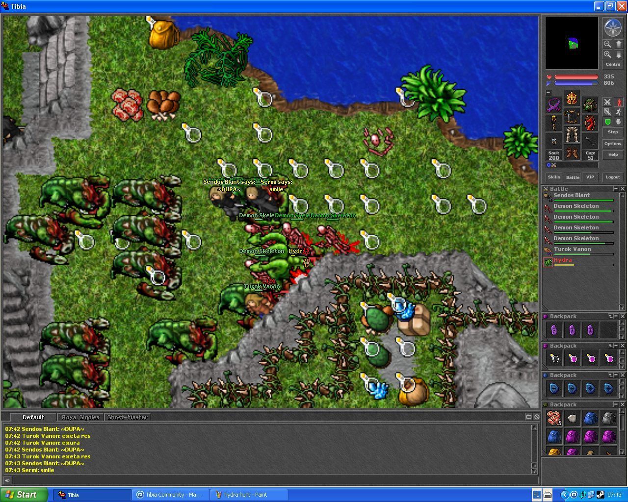 Update dodający Tiquandę pokrytą dżunglą spowodował, że w grze spędzałem dosłownie każdą wolną chwilę. Hydry były wtedy dla nas potężnymi potworami oferującymi możliwości sporego zarobku.Tibia, CipSoft GmbH, 1997-2025.
