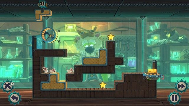 Crunching Koalas stawia na wspomniane crossovery, czyli łączenie różnych koncepcji. Szukając takich ciekawych zestawień, studio kieruje się wytycznymi dotyczącymi projektu gry, czyli przede wszystkim tym, że nie mogą one bazować na manualnych umiejętnościach graczy, aby poradzili sobie z nimi również casuale, i muszą być ciekawe dla hardkorowców. MouseCraft łączy mechanikę Lemmingów z Tetrisem – w grze przeprowadzamy myszy przez labirynty do sera, omijając po drodze pułapki. Gryzonie poruszają się same, więc naszą rolą jest zbudowanie dla nich bezpiecznej ścieżki, właśnie z typowo tetrisowych klocków. Początkowo proste zadanie z czasem stanie się wyzwaniem dla pomysłowości. Tomaszewski zapewnia, że nie będzie to „banalna i cukierkowa” gra. W drodze do sera natkniemy się na przeszkody z kwasem czy wodą i wykorzystamy wiele klocków różnego typu (np. pod napięciem lub wybuchowych). Nie zabraknie także poziomów składających się z więcej niż jednego ekranu. Wszystko to zostanie podane w prostej do obsługi postaci z możliwie krótkim wprowadzeniem, żeby gracz szybko mógł zacząć eksperymentować. Poziomy połączy pewna historia: zwróćcie uwagę na kota w stroju naukowca widniejącego w tle na obrazkach. Co kombinuje ten osobnik? Dowiemy się w pełnej wersji gry.
