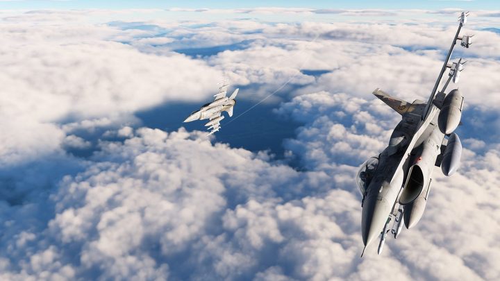 Po wybraniu opcjonalnych modów i malowania polskiego Jastrzębia oraz dostosowaniu grafiki pod monitor lub VR można w końcu wznieść się w powietrze. W DCS World nie znajdziemy mapy z terenami Polski, ale dostępna w darmowej wersji Gruzja ze swoimi zielonymi lasami może je jako tako udawać. Zresztą z wysokości 20 tysięcy stóp łatwo przymknąć oko na różnice i podziwiać chmury, poza tym nasi piloci często latają do innych krajów na ćwiczenia. W edytorze można sobie przygotować scenariusze, które trenowane są w rzeczywistości, jak choćby ostatnie eskortowanie amerykańskich bombowców B-1B Lancer. Oprócz takiego latania w formacji jest wszystko to, co być powinno: niszczenie celów naziemnych za pomocą broni zwykłej i inteligentnej, walka kołowa z innymi samolotami oraz arcytrudny manewr tankowania w powietrzu.