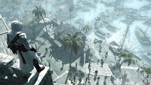 Urządzenie „przenosi” bohatera na tereny Palestyny dwunastego wieku, a więc w okres, gdy Europejczycy za sprawą krucjat przejęli kontrolę nad Ziemią Świętą. Obserwuje on Altaira, który jest w trakcie wykonywania niezwykle istotnej misji. Musi odzyskać Fragment Edenu ze Świątyni Salomona z pomocą dwóch innych asasynów – Malika i jego brata. Na drodze do celu pojawiają się jednak komplikacje w postaci wielkiego mistrza zakonu templariuszy – Roberta de Sable’a. W pogoni za artefaktem Altair łamie kredo, m.in. zabijając niewinnych, a następnie próbuje pokonać de Sable’a, niestety z mizernym skutkiem. Brat Malika ginie, a on sam zostaje okaleczony. Altair ucieka, wraca jednak pokonany i upokorzony do mistrza asasynów – Al Mualima. Podczas rozmowy z nim pojawia się Malik, któremu udało się odzyskać Jabłko Edenu. Obwinia on naszego protagonistę o trudności podczas misji. Mentor degraduje Altaira do rangi pospolitego nowicjusza jako okrytego hańbą.