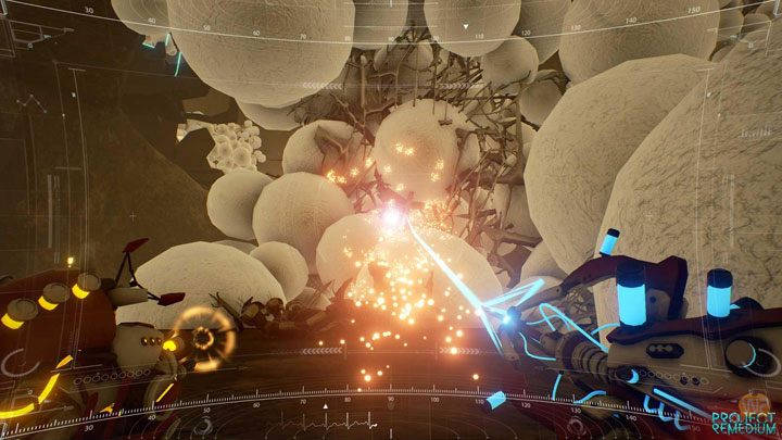Project Remedium to gra dziejąca się w całości we wnętrzu ciała chorej dziewczynki. Sterujemy nanorobotem, a naszym zadaniem jest poznać specyfikę medycznego problemu i wyleczyć organizm. Gdzieś w tle są naukowe podstawy, ale wszystko zostało tak zaprojektowane, by w PR grało się możliwie najprzyjemniej. Produkcja jest FPS-em z twistem. Każdy poziom to inny organ (wątroba, płuca, mózg...), walczymy z bakteriami i infekcjami, ale też z oszalałymi robotami, które postanowiły dostosować wnętrze organizmu do swoich potrzeb. Jako gracze mamy do dyspozycji dwa narzędzia perswazji – pomarańczową broń ofensywną i „podajnik” niebieskiego remedium. Każde cechuje kilka trybów działania (coś jak dwie giwery w Hard Reset), a walka wymaga uwagi, bo strzelanie gdzie popadnie ostrą amunicją dodatkowo uszkadza organy. Project Remedium wygląda nieźle i ma na siebie ciekawy pomysł, jest też produkcją dość zabawną. Jeśli podobał się Wam film Interkosmos, poczujecie się jak w domu.