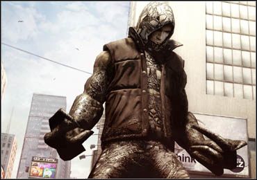 Siłą gry Prototype jest nadzwyczaj ciekawy protagonista, którego umiejętności czynią go unikalnym pośród setek innych elektronicznych bohaterów. Jak wspominałem wcześniej, Mercer potrafi dosłownie pochłaniać zabitych ludzi. Zdobywa w ten sposób zdolności pokonanych osób, ich myśli, wspomnienia, prezencję, a także biomasę. Każda z tych cech czyni Alexa jeszcze bardziej śmiercionośnym. By dokładnie to zobrazować, posłużę się przykładem. Załóżmy, że Mercer zamordował na ulicy niewyróżniającego się z tłumu biznesmena (tak, tak! Nasze alter ego zabija niewinnych! Zapewniam, że to baaaaardzo niemiły koleś). Po pochłonięciu go zwiększył się jego współczynnik biomasy, co wzmocniło jego mięśnie. Może zatem szybciej biegać i wyżej skakać. Dzięki tym zdolnościom udaje mu się umknąć wojskowym i skryć w jednym z ciemnych zaułków miasta, by spokojnie przeobrazić się w uśmierconego przed chwilą człowieka. Pod kamuflażem dociera na dach jednego z wieżowców, z którego – dzięki dużej biomasie – przeskakuje na przelatujący tuż obok śmigłowiec bojowy amerykańskich sił zbrojnych. Dostaje się do kokpitu, wyrzuca jednego z pilotów, a drugiego zabija i pochłania go, by zdobyć zdolność do pilotowania maszyny, w której siedzi. Mając uzbrojoną maszynę, może kontynuować swoją krucjatę. Interesujące, prawda?