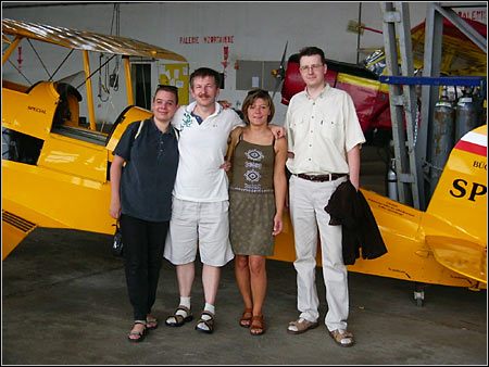 Samolot Bucker 131 „Jungman”, który miał być zapasową atrakcją niestety miał awarię silnika i obsługa naziemna coś w nim grzebała z nadzieją wykrycia usterki. Maszyna naprawdę robi wrażenie, ale wszyscy doszliśmy do wniosku, że ze względu na konstrukcję (owiewki zamiast zamkniętej kabiny) jesteśmy niezbyt odpowiednio ubrani na przelot tym cudeńkiem. Trochę mogłoby nas przewiać. Nie mieliśmy przecież ze sobą kurtek lotniczych, zaś ostatnie gogle i pilotkę wykupił Donald Sutherland, kiedy brał udział w filmie „Złoto dla zuchwałych”.