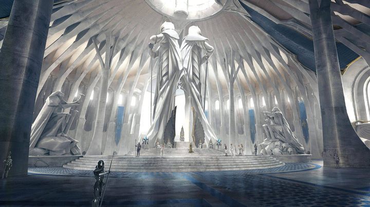 Wkraczamy powoli na Wielki Plac. To obok targów serce miasta, gdzie ludzie schodzą się wiwatować na cześć monarchów, którzy zapewnili Demacii bezpieczeństwo. Nacieszcie się widokiem. Tak, to wszystko zbudowano ręką człowieka, wszystkie te zaokrąglone mury i łuki, kolumny i posągi.
