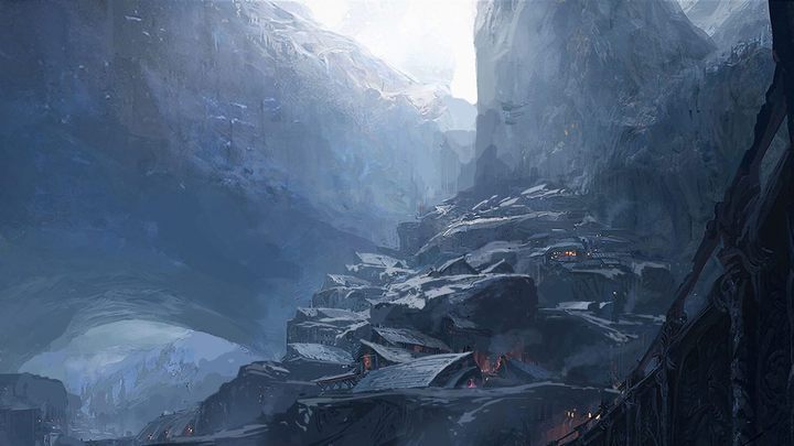 A teraz stańcie na tych klifach tylko nie za blis... ech, nieważne. Przynajmniej obejrzy sobie z innej perspektywy, a Wy – rozejrzyjcie się dobrze. Znajdujecie się na szczycie świata. Spójrzcie na to, co magia, wyobraźnia i konsekwencja potrafią uczynić z połączenia lodu i skały. Takich wież, pałaców czy osad nie spotkacie nigdzie indziej. Zapamiętajcie to wszystko, zabierzcie ze sobą. Nie, nie do grobu. Mam nadzieję. Utrwalcie sobie ten widok, bo czegoś takiego nigdzie indziej nie ujrzycie. Idziemy dalej.