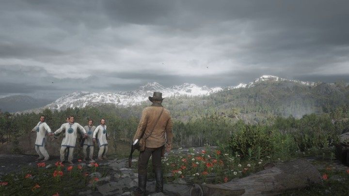 Na realizm przedstawionego w grze świata wpływają także mechaniki związane z przenoszeniem długiej broni i koniecznością każdorazowego wyciągania jej z olstra przy siodle. Wyobrażam sobie niecierpliwych graczy, którzy stale zapominają o tej czynności i polują na niedźwiedzie za pomocą colta. Zresztą, co tu owijać w bawełnę – przez kilka pierwszych godzin zabawy mnie też się to nagminnie zdarzało. I wiecie co? Cieszyło mnie to. To znaczy nie sam fakt zapominalstwa, ale to, że coś takiego znalazło się w grze. To kolejny element podbijający immersję, za który jestem Rockstarowi cholernie wdzięczny. Nie można też nie wspomnieć, że nie da się wykonać jakiejkolwiek dodatkowej czynności, gdy już coś mamy w rękach. Spróbujcie ograbić przeciwników, trzymając jednocześnie jakieś truchło. Nie da się? I to mi się podoba!