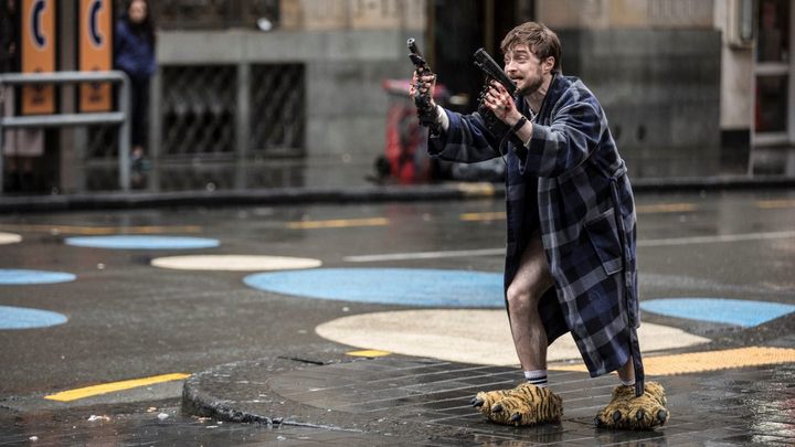 Nastrój – mocno konkretny, trzeba przyznać – zgrabnie podsumowywało również zdjęcie z planu Guns Akimbo, w którym główne role grali Samara Weaving (Opiekunka, Zabawa w pochowanego) oraz sam Daniel Radcliffe. Stało się ono hitem za sprawą angażu tego konkretnego mężczyzny oraz wyrwania z kontekstu. Szlafrok? Kapcie? Pistolety? Czy one są przybite? Czemu on ma minę, jakby desperacko próbował kogoś przekonać?