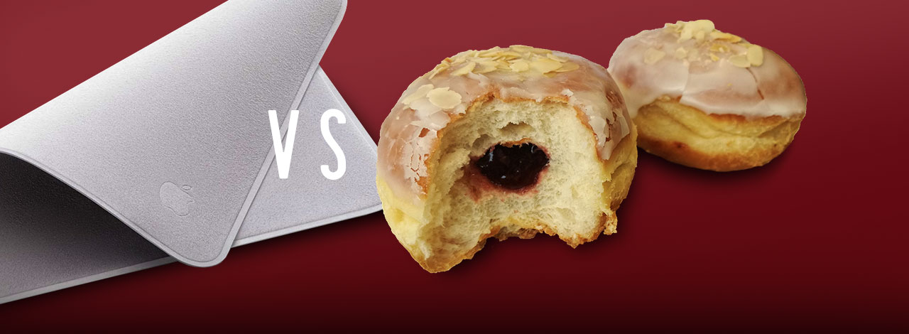 Czwarty i ostatni etap to korzystanie z urządzeń po zjedzeniu pączka. Dużo trudnych do wyczyszczenia, tłustych, słodkich i klejących się zabrudzeń to ostateczny test dla dowolnej metody czyszczenia. Czy ściereczka z mikrofibry Apple dała radę?
