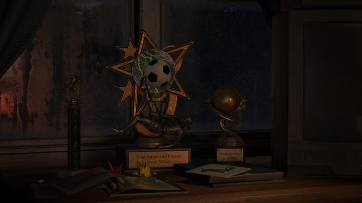 Kolejnymi ozdobami, które znalazły swoje miejsce w pokoju Sary, są nagrody z turniejów. Gra mocno sugeruje, że Sarah była aktywną piłkarką. Świadczy o tym koszulka z numerem 14 (w pierwowzorze była ona złożona, ale w remake’u powieszono ją na klamce dużej szafy). Na komodzie możemy z kolei znaleźć różne piłkarskie trofea – jedno z nich zostało przyznane zawodniczce, która zrobiła największe postępy w danym sezonie. W serialu również możemy zobaczyć nagrody, nie są one jednak eksponowane. Zajmują swoje miejsce na oknie w pokoju Sary, częściowo zasłonięte firaną.